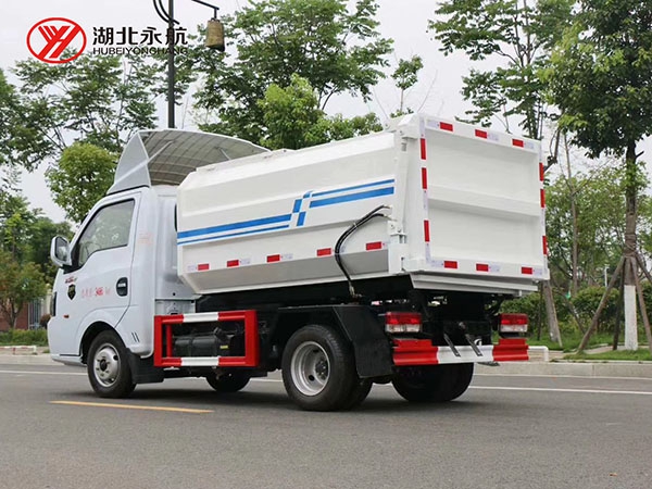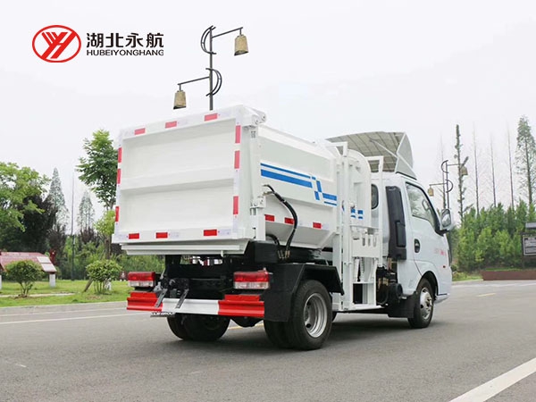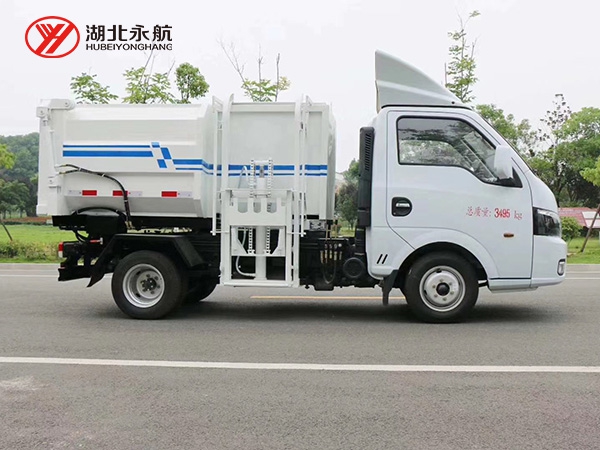 箱体容积3立方,碳钢材质,边板3mm底板4mm,中举油缸,驾驶室外部手动操作和驾驶室内部电控操作,可挂240L国标塑料垃圾桶,后门液压开启和关闭。