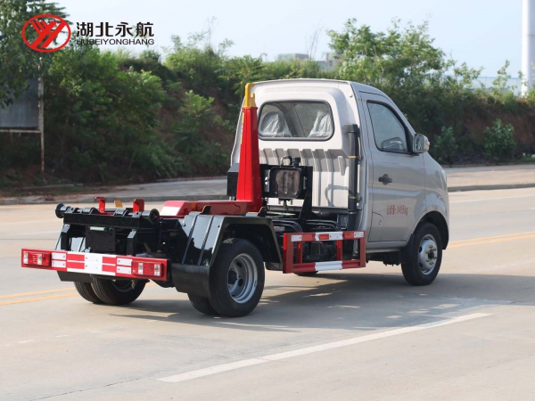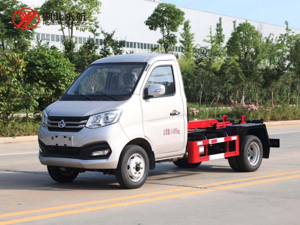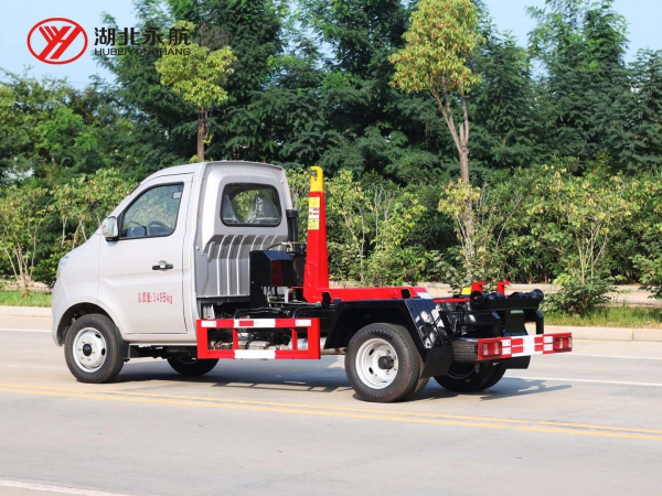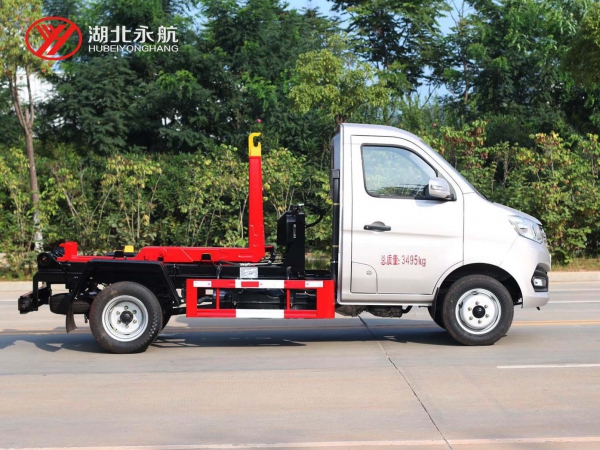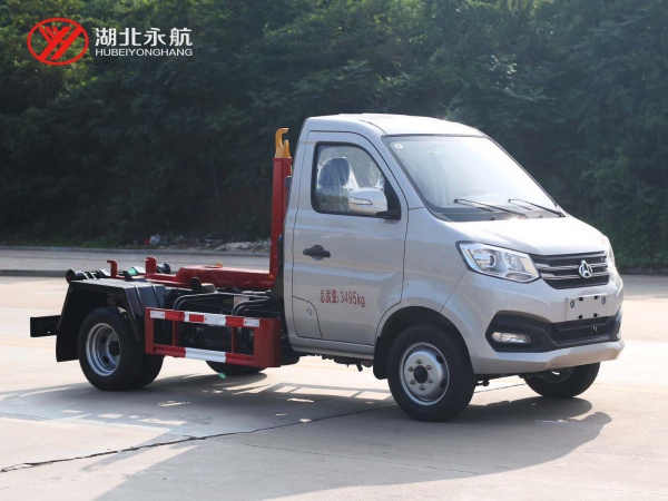 该车主要由拉臂钩总成、可移动箱体总成、液压系统、液压锁紧总成、电液操作系统组成,能实现一车与多个垃圾箱联合循环作业运输,整车具有结构简单、操作方便、装卸效率高、机械自动化程度高、节省人力的优点。
