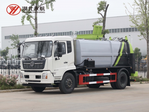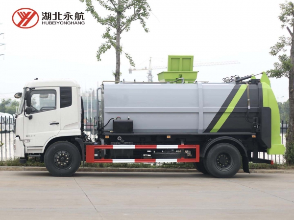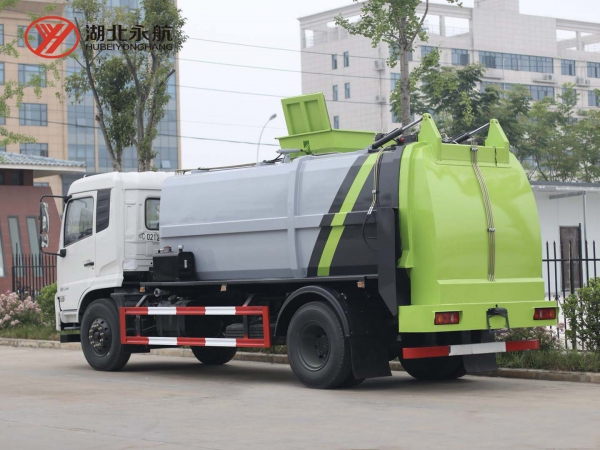 4、箱体尾部导流槽设计,避免卸料时的垃圾飞溅。