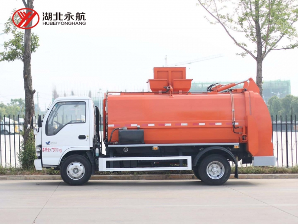 3、进料口标配液压上盖,防止垃圾飞溅。