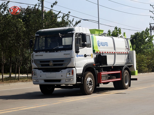 3、进料口标配液压上盖,防止垃圾飞溅。