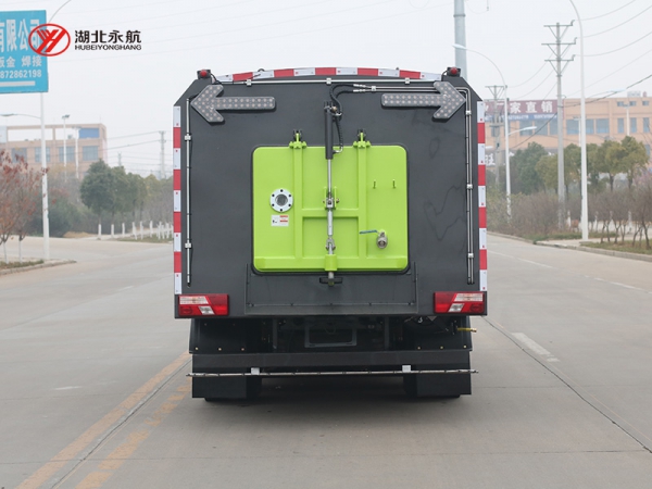 3、具备倒车保护装置,在作业过程中如遇紧急倒车,智能化的控制系统会自动停止作业并收回扫盘、吸盘和侧喷杆;具有防止举升垃圾箱翻车保护;具有检修安全保护。