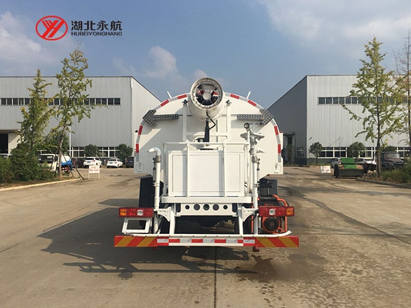 本车具有独立的高、低压两套水路系统,为清洗车工作提供压力水源。其工作原理是:利用高压水泵产生的高压水,经喷水架的高压喷嘴喷出,利用高压水流的动能,以高压力、低流量的方式清洗,强力去污,高效节水,能将路面的陈旧污渍清洗干净;或高压水经左(右)角喷喷出,清洗路缘、人行道及护栏隔离区;使用高压喷枪还可清洗路标、广告牌、高架路等。