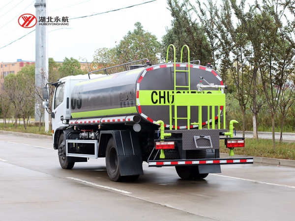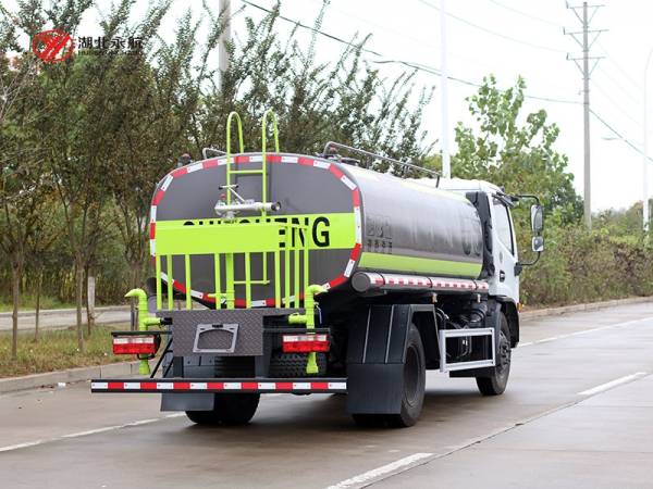 容积9方,安装专用洒水泵,可自动抽水和自动排水,洒水宽度≥10m,洒水炮射程≥18m,垂直吸程≥6m。