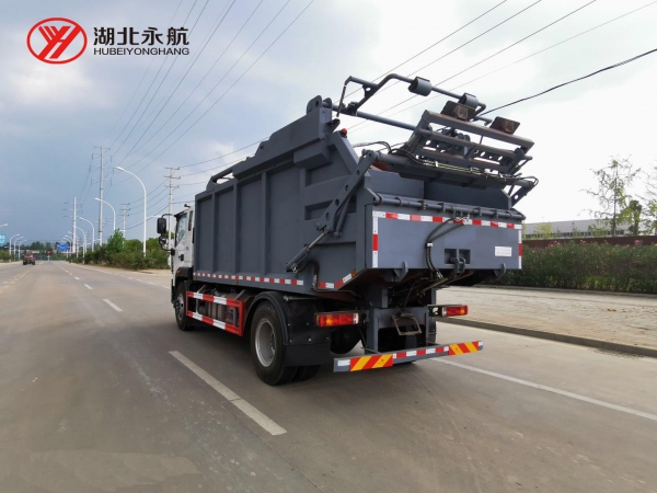 1)、油缸驱动压桶板压桶技术,倾翻上料安全可靠,消除高位上料可能出现的掉桶风险。2)、高品质液压阀消除液压换向冲击,降低作业噪声。3)、先进的电控系统,符合人机工程学的操控系统,大大提高了该产品的人性化程度和市场适应性。4)、与垃圾直接接触的钢材均选用高强度耐磨材料,屈服强度高,耐腐蚀能力强。5)、大离去角,通过性好,避障能力强,满足老城区狭窄街道和填埋场等严苛作业环境。6)、推铲、压填机构及后门采用逻辑互锁控制,安全可靠。