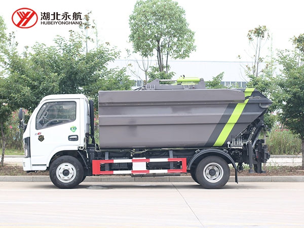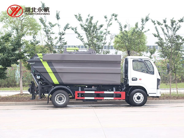 该车采用二类汽车底盘,加装高位倾翻垃圾箱、翻桶机构、刮板滑板压缩装置、液压系统和电控系统,整车外形美观、驾驶舒适、操纵便捷、机动灵活。