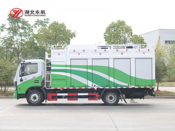 7、该车标配高压清洗泵,可进行专业管道疏通,最多可装2方清水,一车多用,节省客户购车成本。