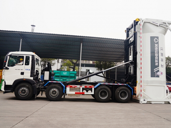 结合日本新明和技术,全新开发的一种可用于竖式垃圾箱体转运的车辆,该车全钢架机构设计,强度高,稳定可靠,操作直观、简便。
