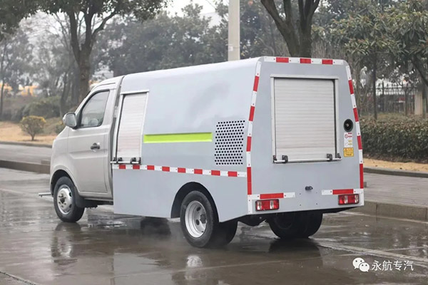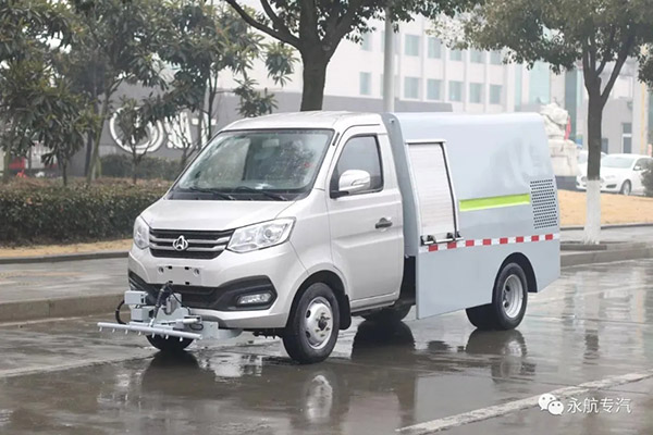 路面养护车是我公司根据市场需求开发的一款清洗城市人行道、非机动车道、摊点油污地面及城市牛皮癣的新型多功能清洗车,具有外形美观、驾驶舒适、操作简单、机动灵活、维修便利、噪声小、可靠性高等特点。这款车型采用长安底盘改装,加装高压清洗机系统、整体式水箱(含清水仓、工具仓、动力仓)、前喷水架及定点清洗装置、电气系统、高压水路及卷盘装置、辅助清洗推车等部件。