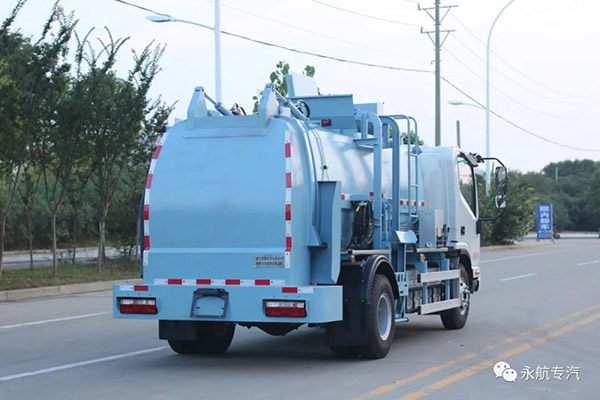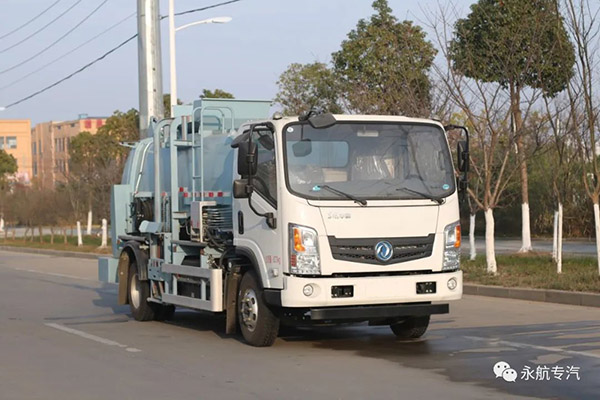纯电动餐厨垃圾车是我公司积极响应国家新能源政策,汲取国内外同类产品的优点研发的一款市政环卫作业车,上装由箱体、后门总成、后门开启机构、密封锁紧机构、推铲机构、挂桶提升机构及操纵机构等组成。主要用于收集与转运餐饮业、宾馆、单位食堂等产生的餐厨垃圾,也可用于收集与转运居民小区的厨余垃圾。