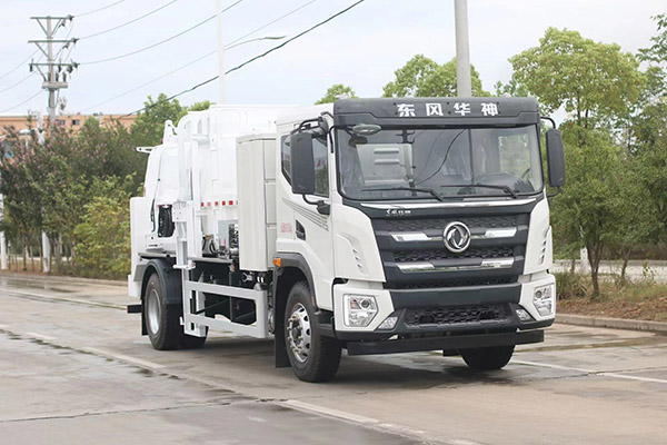 该车采用东风华神T5纯电动二类汽车底盘,上装由箱体、后门总成、后门开启机构、密封锁紧机构、推板机构、挂桶提升机构及操纵机构等组成。