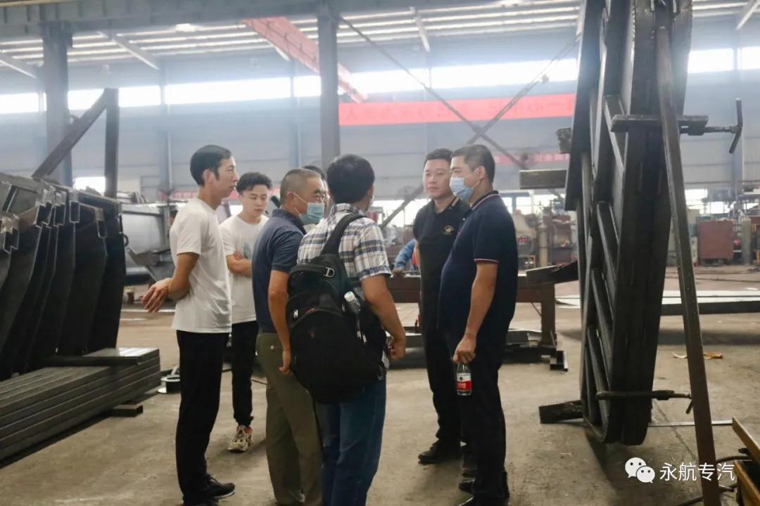 考察过程中,永航专汽负责人详细介绍了本公司当前生产运营情况,包括环卫产品类型、生产制作工艺、细节优化处理等方面。福田普罗科考察团充分肯定了永航环卫车的高品质、高要求。