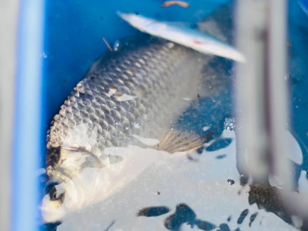 比赛刚开始10分钟,质检部熊林就钓到了一条大板鲫,目测有8两之重。
