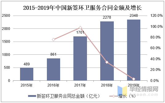 2015-2019年新签环卫服务合同金额及增长