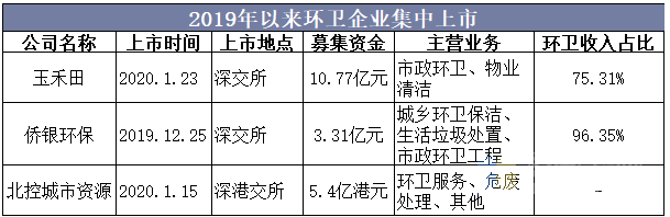 2019年以来环卫企业集中上市