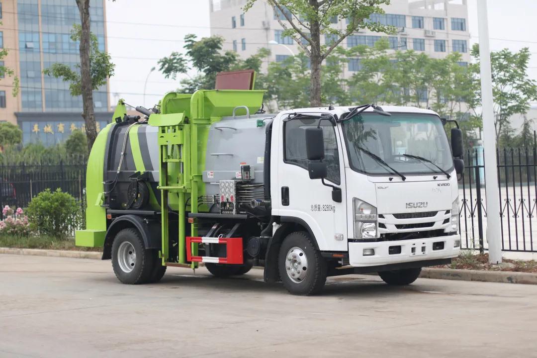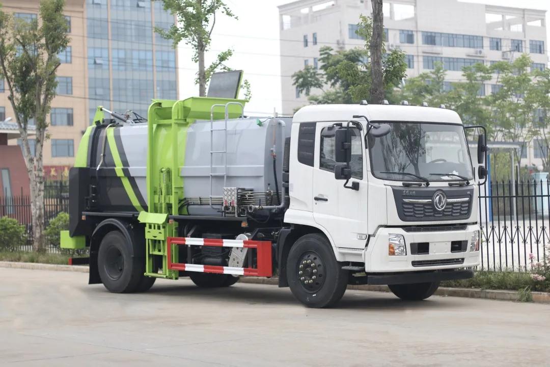 箱体尾部导流槽设计,避免卸料时垃圾飞溅。