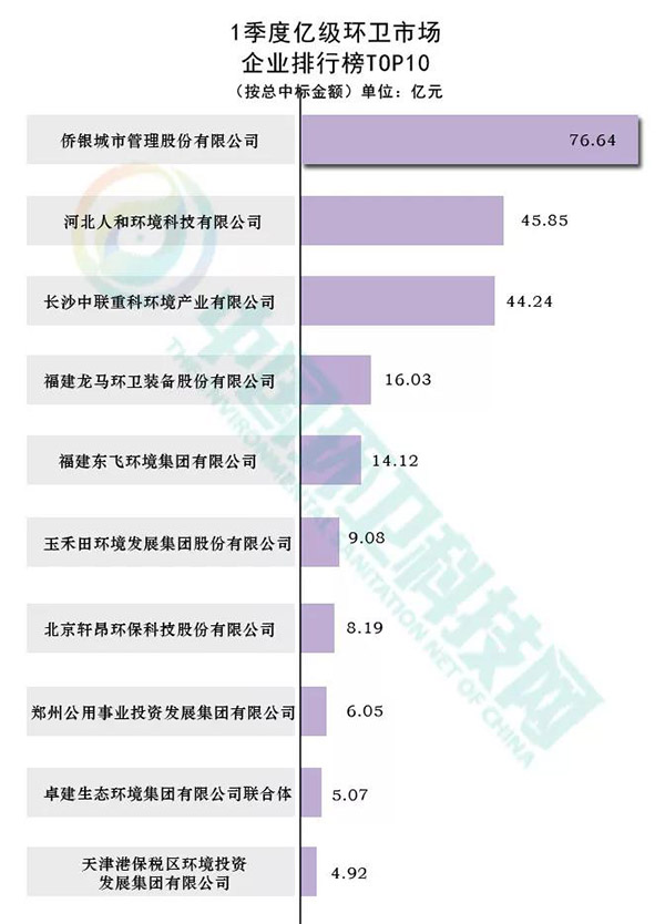 1月份,侨银股份喜迎开门红,连中3个15亿+项目后,2月、3月乘胜追击,最后以超76亿元的成绩稳坐一季度亿级环卫市场宝座。