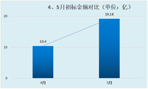 二、5月广东市场的招标项目无论是从数量上还是金额上看,与4月相比,皆有所上涨。